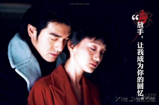台词点评:在陈可辛的这部歌舞片中,周迅与金城武的文艺北漂爱情,最终演变成一场华丽的戏中戏。蓄意的自我谋杀,只是为了让爱过的人记住自己,那些难以磨灭的记忆,那些青春里的爱情纠缠,那些在岁月中不断发酵的仇恨与思念,只有在舞台上用别人的故事作为出口,至少在他们心里那是一场真实的演出,地上渗出的红色,是滴在孙讷心上的血。陈可辛用这场戏营造爱情的悲壮,那高空中掉落的一滴泪珠泄露了秘密,没有冥顽不灵的铁石心肠,只有忘不了放不掉的情与伤。内心多想不顾一切地狂爱一场,却只能冷冷说出那句.“放手,让我成为你的回忆。”